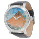 Uhr, Vintage Männeruhr mit schwarzem Lederarmband