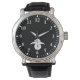 Uhr, Vintage Männeruhr mit schwarzem Lederarmband