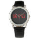 Uhr, Vintage Männeruhr mit schwarzem Lederarmband