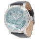 Uhr, Vintage Männeruhr mit schwarzem Lederarmband