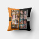 Personalisieren Sie dieses Kissen mit Ihren eigenen Fotos. Dieses Kissen ist beidseitig mit den gleichen 16 Fotos vorne und hinten. In schwarz und orange mit Streifen.