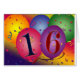 Große bunte Ballone mit Confetti und Regenbogen färbten Hintergrund mit 16 in den Ballonen. Vervollkommnen Sie Entwurf für Ihre 16. Geburtstag Gastgeschenke/Mailings.