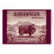 Die 1934 fünf Pence Merino Sheep Briefmarke von Australien. Ein großartiges philatelisches Design mit einem Merino Widder in einer australischen Landschaft gesehen.