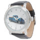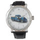 Uhr, Vintage Männeruhr mit schwarzem Lederarmband