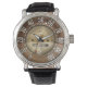 Uhr, Vintage Männeruhr mit schwarzem Lederarmband