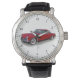 Uhr, Vintage Männeruhr mit schwarzem Lederarmband