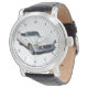 Uhr, Vintage Männeruhr mit schwarzem Lederarmband