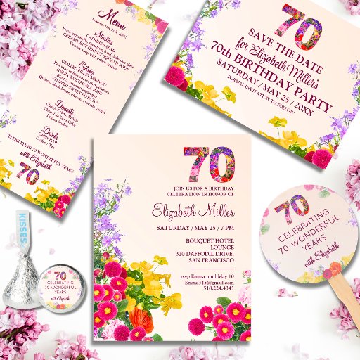 70 Years Party Vibrant Floral Design Pastel 70thDesignt von Claudia Anting