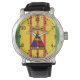 Uhr, Vintage Männeruhr mit schwarzem Lederarmband