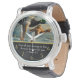 Uhr, Vintage Männeruhr mit schwarzem Lederarmband