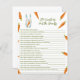 Geschlechtsneutrale Babydusche Mit dem Sprichwort "A LITTLE BUNNY IS ON THE WAY!", eine Illustration eines Aquarellhasen (Kaninchen) mit Karotten in Pfoten und vielen orangefarbenen Karotten. Matching-Elemente verfügbar.
