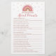 Watercolor Boho Rainbow 20 Fragen über Eltern Kinderdusche und Gender Reveal Game. Das Design besticht durch ein elegantes, modernes Textlayout. Um erweiterte Änderungen vorzunehmen, wählen Sie bitte unter Personalisieren dieser Vorlage die Option "Klicken Sie auf, um weitere Anpassungen vorzunehmen".