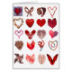 Collage mit 20 Herzen. Hitzeform, wie durch Flamingos, Herzsocken, Strand-Muscheln, Herbstblatt, Schmetterling, Zuckerstangen, Scheren definiert…