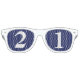 21 Jahre alte Sonnenbrille zum Geburtstag. Weißer Text auf blauem Hintergrund.