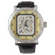 Uhr, Vintage Männeruhr mit schwarzem Lederarmband