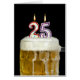 Nummer 25 Kerzen in Tasse von auf schwarz abgeschiedenem Bier zum 25. Geburtstag