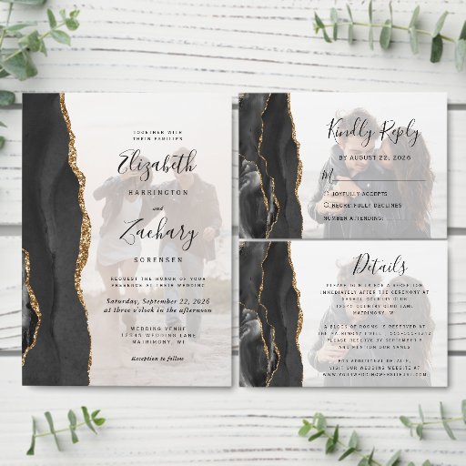 2-Foto-Black-Gold-Agate Einladung zur Hochzeit