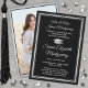 Teilen Sie die Freude an einer High School oder Uni-Abschluss mit diesen individuellen 2 Foto Schwarz, Weiß und Silber Ankündigungen. (IMAGE PLACEMENT TIP: Eine einfache Möglichkeit, ein Bild genau so zu zentrieren, wie Sie es gewollt haben, ist es, es einzuschneiden, bevor Sie es auf die Zazzle-Website hochladen.) Dieses Template enthält den Namen des Absolventen, das Jahrgang und die Schule. Es ist einfach, sich nach Ihren Wünschen anzupassen, z. B. Party Einladungen, Eltern-Namen, Sonderehren, Studientitel, Lieblings-inspirierendes Zitat, Kontaktinformationen des Absolventen, künftige Bildungen oder neue Stellenangebote. Wenn ein Text nicht gewollt ist, löschen Sie ihn einfach. Das Design zeichnet sich durch einen schwarzen Hintergrund, Imitate mit gebürstetem Edelstahl-Mörtel, handgeschriebene Schrift-Kalligraphie, moderne minimalistische Typografie und zwei Fotos Ihrer Wahl aus, wie Seniorenbilder oder Bilder aus der Anlaufzeremonie. Bitte beachten Sie, dass Silber gedruckt ist, nicht metallische Folie. Diese eleganten Ankündigungskarten für Abschlüsse sind eine schicke und trendige Art, Ihre Feier mit Freunden und Familie zu teilen. Herzlichen Glückwunsch an den Absolventen!