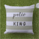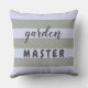 Ein einfaches, elegantes und lustiges Design! Horizontale Streifen pastellblau, auf grauem Hintergrund, farblich einstellbar. Im Text steht "Patio KING" auf der einen Seite und "Garten MASTER" auf der anderen Seite. Text kann leicht angepasst werden, um lustige und relevante Alternativen zu schaffen, vielleicht sogar Kontrast auf jeder Seite des Kissens. Mit mehreren Kissen kann es sogar zu einem Spiel mit Spaß werden. Die Idee des Designs kommt in verschiedenen Farbvarianten mit Streifen pastellgelb, pastellrot, pastellgrün, pastellblau, weiß, schwarz oder grau.
