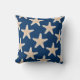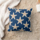 Wunderschönes Doppelkissen mit Seestern auf Beige, Creme, Pastellfarbe, hellbrauner Hintergrund auf einer Seite und viele auf marinebarbenem Hintergrund auf der anderen Seite.
