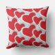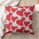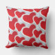Ein Kissen mit einem sich wiederholenden Muster von 2 verschiedenen roten Herzen jedes Herzens, umgeben von einem weißen Rahmen.