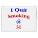 Wissen Sie jemand, das beendigen, an Alter 31 zu rauchen? Oder ist 31 Jahre alt und wird zu rauchen beendigen? Möglicherweise ist es ihr 31. Geburtstag und sie haben entschieden, dass es der rechte Tag ist, zum zu rauchen zu stoppen. Macht ein perfektes 31. Geburtstagsgeschenk, oder gerade sind eine Weise, Sie zu sagen sie haben beendigt das Rauchen stolz.