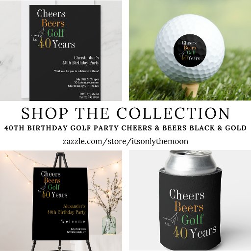 40th Birthday Golf Party Cheers Beers Black GoldDesignt von Only The Moon