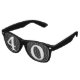 40 Jahre alte Sonnenbrille. Schwarz mit weißem Text.