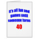 Es ist aller Spaß und Spiele, bis jemand 40 dreht. Humorvoller 40. Geburtstagsentwurf für die 40 Jährigen, der eine Richtung des Spaßes über ihr Alter hat. Macht ein großes 40. Geburtstagsgeschenk.