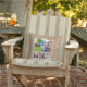 Personalisierte Kissen aus Foto mit Familienname und Testjahr auf rustikalem Einbruchboden.