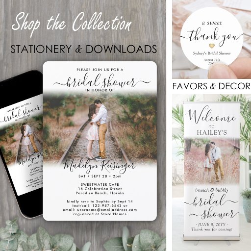 4 Foto Elegante Moderne Kalligraphie Brautparty Einladung
