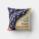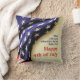 Dieses patriotische amerikanische Fahne Kissen wird eine großartige Ergänzung zu Ihrer amerikanischen Wohngestaltung sein. Das Design zeigt die Fahne der USA mit einem anpassbaren Platzhalter-Schriftzug-Vers in blau. GLÜCKLICHER 4. JULI erscheint in roter Typografie. Das ist alles Set vor einem blassgelben Hintergrund. Dieses Kissen würde auch ein großartiges Geburtstagsgeschenk machen und kommt in anderen patriotischen Versionen für die Zuhause zum Thema USA. Teil der Sammlung USA von Berean Designs.