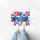 Doormat mit einem patriotischen rot, weiß und blau-blauen Ballons gedruckt am 4. Juli. Passen Sie diese Matte an oder kaufen Sie, wie es ist.