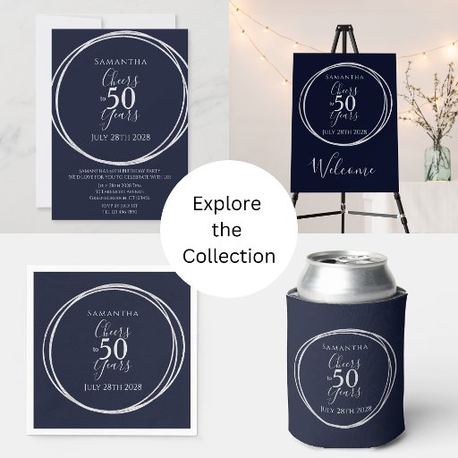 50th Birthday Navy Silver Cheers to 50 Years PartyDesignt von Only The Moon