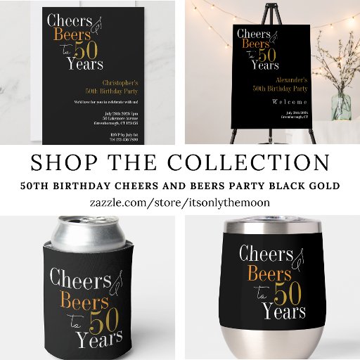 50th Birthday Cheers and Beers Party Black GoldDesignt von Only The Moon