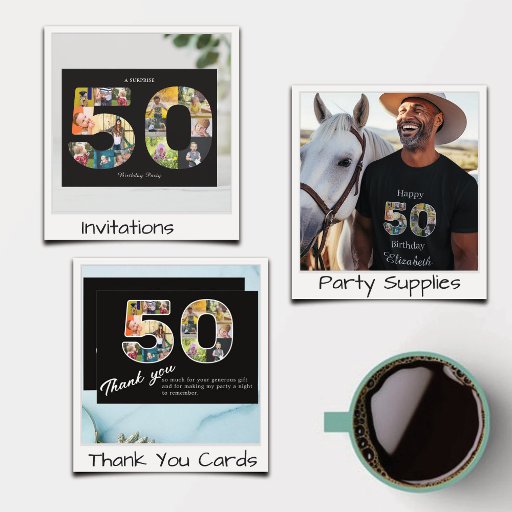 Ein wunderbarer Weg, um Ihnen zu danken, die an einem 50. Geburtstag gefeiert haben. Ein einzigartiges klassisches Design Schwarz-Weiß Dankeschön-Karte. Verwenden Sie unsere Vorlage, um Ihre eigene, benutzerdefinierte Foto-Collage zu erstellen. Dieses liebevolle Geburtstagsparty-Accessoire für dieses wunderbare Party hat ein schlichtes elegantes Format mit einer schönen Typografie. Das Design konzentriert sich auf Ihre 14 Bilder in der "50". Die verwendeten Fotos sind quadratisch (Instagram-Stil), alle Bilder sind ziemlich zentral. Sie können Landschafts- und Portraitbilder verwenden, die automatisch zugeschnitten werden. Tauschen Sie Ihre Bilder in verschiedene Positionen um und haben Spaß beim Erstellen Ihres Layouts. Pop in unser Geschäft und stöbern Sie nach dem Angebot von Geschenken aus dem 50. Foto.
