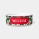 Ein Niedlicher grüner Vintager Weihnachtsgeschenk der 50er Jahre. individuelle Name Haustierfutterschale mit weißen, flauschigen Kätzchen.
