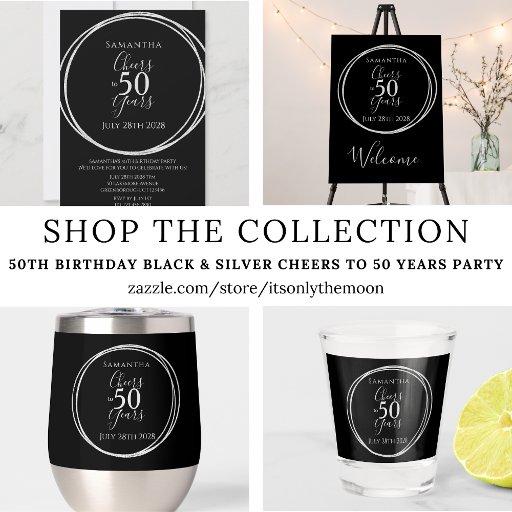 50th Birthday Black Silver Cheers 50 Years PartyDesignt von Only The Moon
