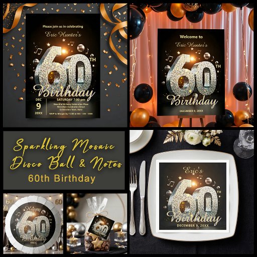 Sparkling Mosaic Disco Ball & Notes 60th BirthdayDesignt von Kristina Lj Petrovska