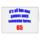 Es ist aller Spaß und Spiele, bis jemand 65 dreht. Humorvoller 65. Geburtstagsentwurf für die 65 Jährigen, der eine Richtung des Spaßes über ihr Alter hat. Macht ein großes 65. Geburtstagsgeschenk.
