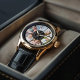 Uhr, Vintage Männeruhr mit schwarzem Lederarmband