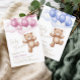 6 Tisch Babyduschkarte Gedruckt mit einem bezaubernden Teddybär, der auf Ballons in den Wolken fliegt.