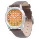 Die Armbanduhr dieser Männer hat ein Design aus den 70er Jahren aus massiven gelben Diamanten in braunen Diamantenfeldern auf einem orangefarbenen Feld.