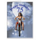 Ein schönes Mädchen, das mit dem Motorrad durch die Sterne am Himmel fährt. Eine ganz andere Geburtstagskarte für den Mann, der ein Motorrad mag!