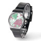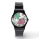 80er Fresh Abstrakt | Rosa und grüne Form Monogram Armbanduhr