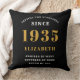 Ein personalisiertes klassisches Kopfkissendesign für die Geburtstagsfeier für eine geborene Person im Jahr 1935. Fügen Sie den Namen zu diesem Vintagen Retrostil Schwarz, Weiß und Gold für ein individuelles Geburtstagsgeschenk hinzu. Bearbeiten Sie den Namen und das Jahr einfach mit der Vorlage. Ein wunderbares Geschenk zum Geburtstag. Mehr Geschenke und Party für dieses Party Feiern im Laden zur Verfügung.