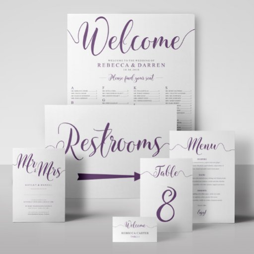 Dieses Lila Seating Chart zeigt 9 Tische, ist aber in verschiedenen Ausführungen von 6 Tischen bis 18 Tischen erhältlich. Bitte sehen Sie sich meinen Zazzle Shop für die komplette lila lila Hochzeitskollektion an.