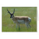 Pronghorn Antelope Big Buck Card. Dieser große Pronghorn fütterte in der üppigen Frühlingsgrüne, als ich dieses Foto nahm. Er lässt seinen schweren Wintermantel für einen viel leichteren Sommermantel aus, um ihn cooler behalten. Die Sommertemperaturen der Alberta-Prärie können 40 Grad Celsius erreichen.