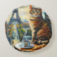 A Morning in Paris | Tabby Cat at a Cafe Rundes Kissen