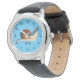 Kinder Edelstahluhr mit schwarzem Lederarmband